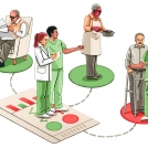 Eva Bee created a series of fabulous illustrations for a website summarising nearly a decade of research by the University of Exeter on home sensor systems and how they are used to support health. To see more of Eva's work, click here.