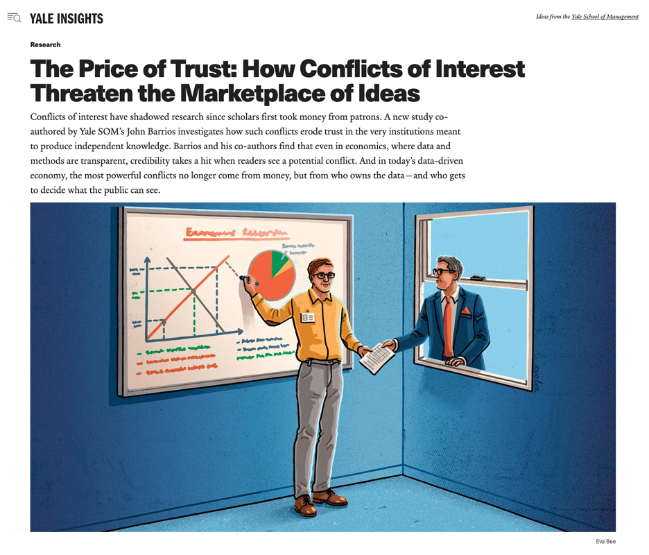 Known for creating conceptual illustrations that turn complex ideas into clear, engaging images, Eva was thrilled to be commissioned by the Yale School of Management to illustrate two of their recent features. The first to accompany their article on people’s trust in research and the second, an Escher-inspired header illustration for their latest Yale Insights collection.