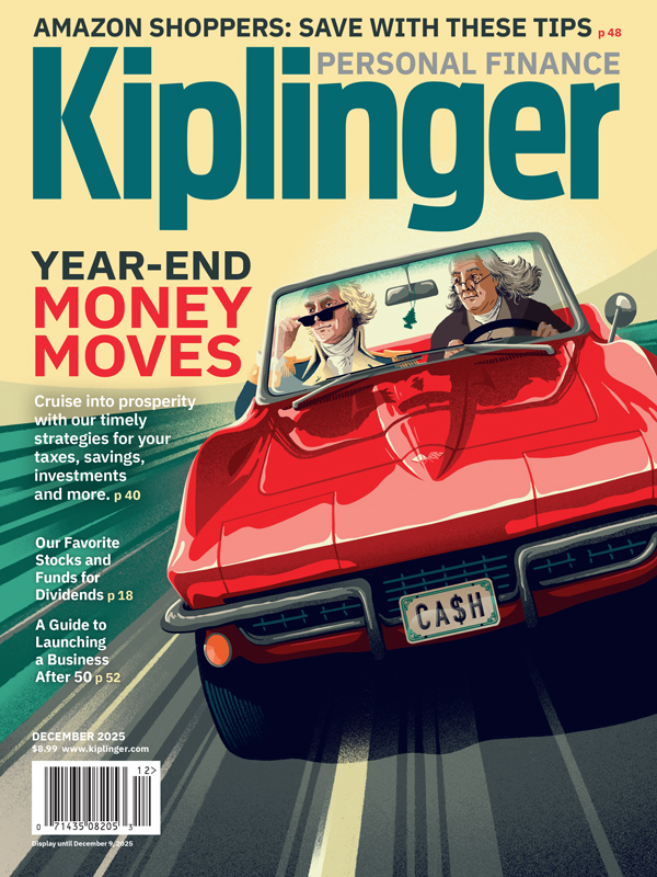 Mark Frudd created this dynamic cover illustration for the December issue of Kiplinger Personal Finance. Depicting two of the Founding Fathers of America, George Washington and Benjamin Franklin riding along in an iconic 1966 Chevy Corvette Sting Ray, the cover is a great example of Mark's distinctive and detailed illustration style.