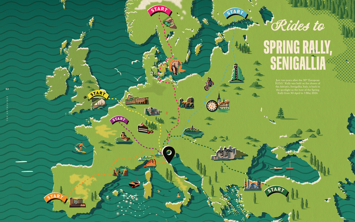 Harry lives in Suffolk, where he works from his studio overlooking Sudbury’s ancient water meadows. Initially from London, with a background in design and publishing, Harry’s versatile illustrations have been commissioned by a diverse range of clients across advertising, design, editorial and publishing. His eye-catching and often conceptual style has a distinctive textural quality, influenced by mid-century illustration, vintage signage, and Harry’s love of nature, travel and music.