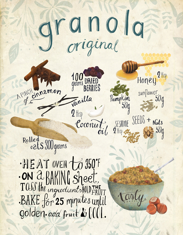 We love this recipe Carrie recently created. Featuring both Carrie's handcrafted typography and her mouth-watering food illustrations, this artwork is a great addition to her portfolio.