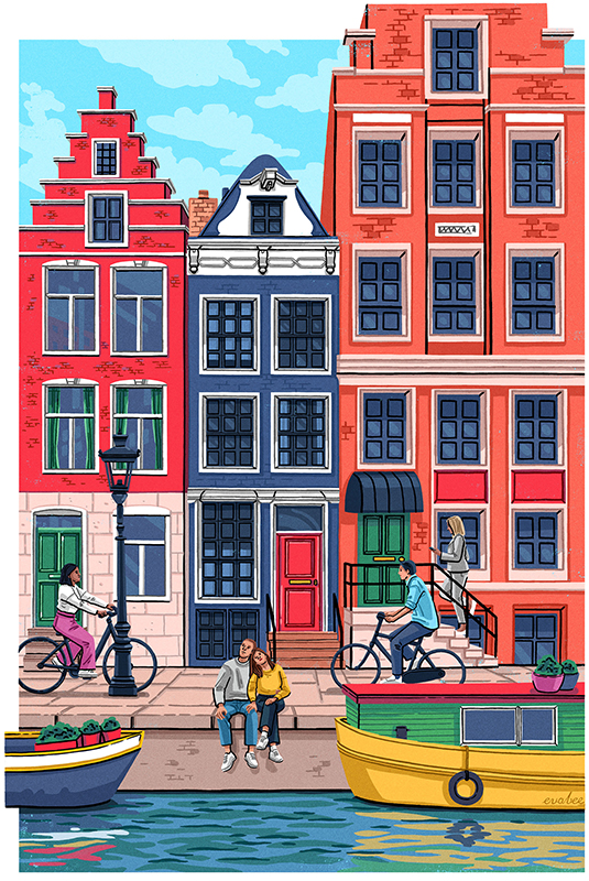 Blurring the lines between hand drawn and digital illustration, Eva Bee's style combines vibrant colour and contemporary scenes, expertly demonstrated in these latest additions to her portfolio. To see more of Eva’s work, click here.