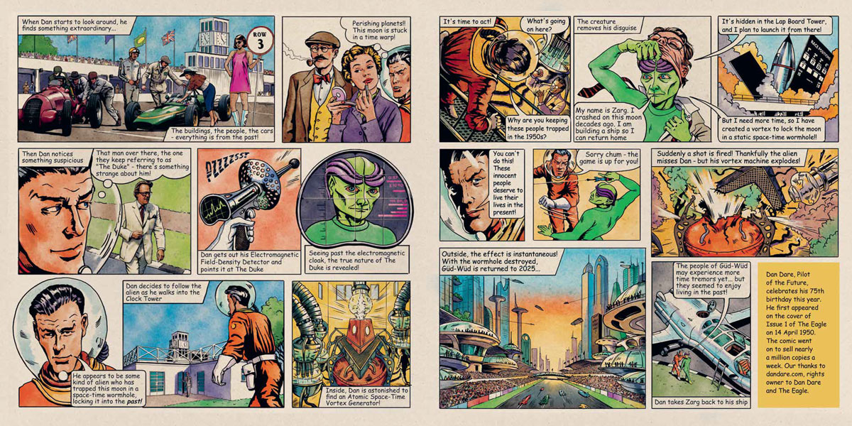 Expertly re-creating the colours, texture and style of the original, Garry Walton was commissioned by Goodwood to create a pastiche of a vintage 1950’s Dan Dare comic for their iconic Revival Programme. To see more of Garry's work, click here.