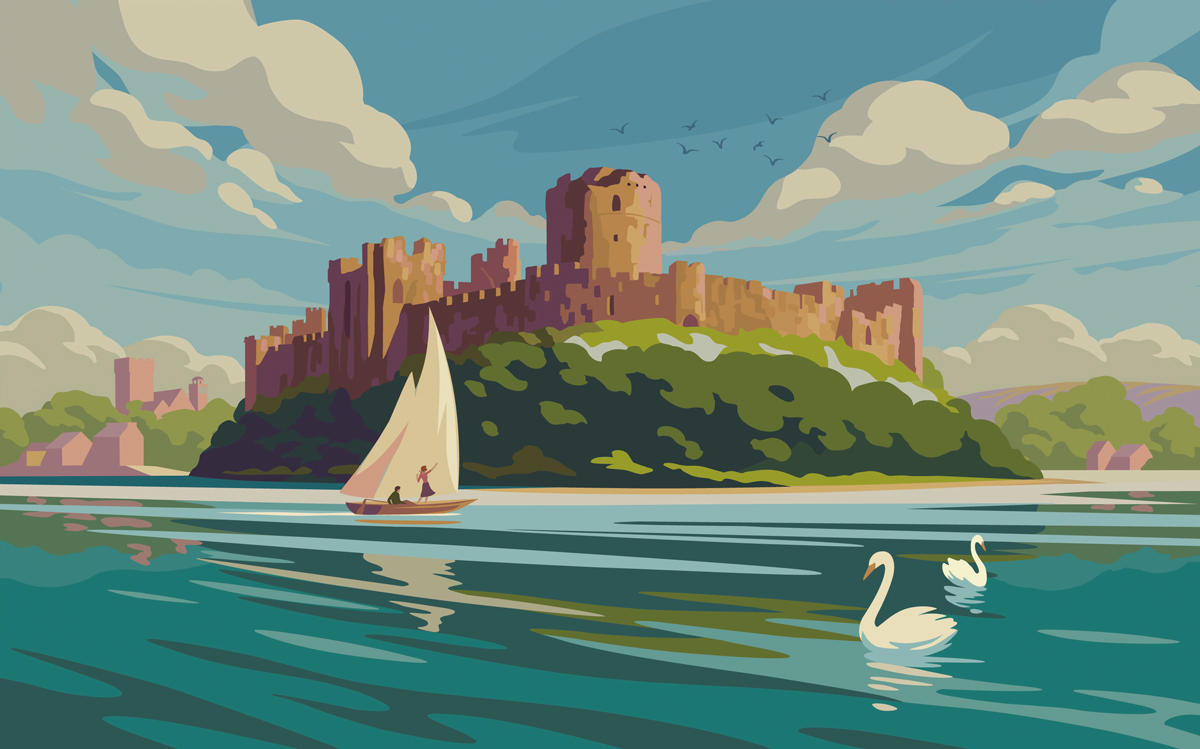 Gary Redford produced this stunning artwork for Pembroke Castle. Inspired by poster art of the early 20th Century, Gary’s contemporary style perfectly captured the castle in all it’s glory. Gary’s artwork is being used across the historic landmarks merchandise and marketing materials. To see more of Gary’s work, click here.