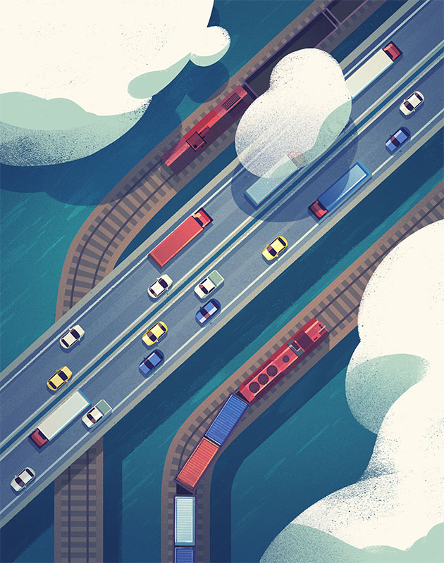These stunning bird’s eye view illustrations were created by Mark Boardman. Making great use of Mark’s technical yet accessible style, the images were commissioned for a special feature on the impact of the Covid pandemic on global trade for Quarterly Magazine. To see more of Mark’s work, click here.