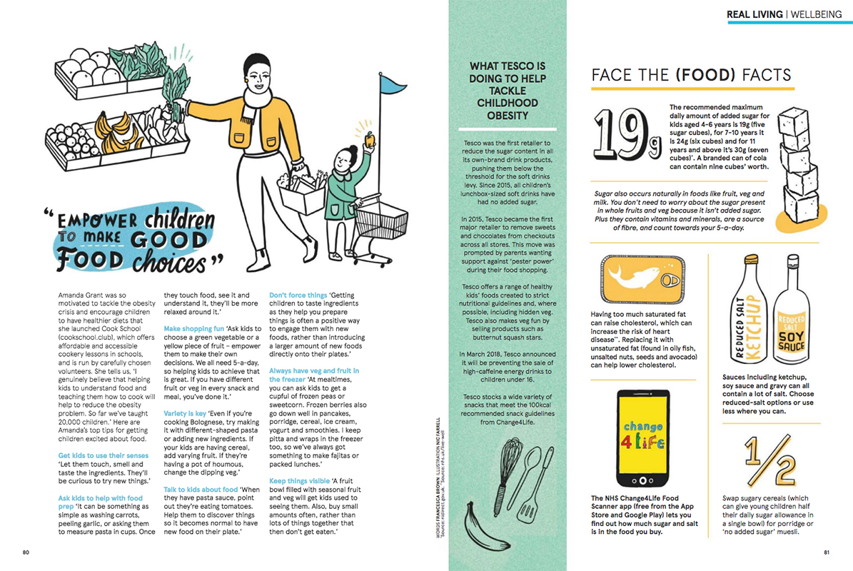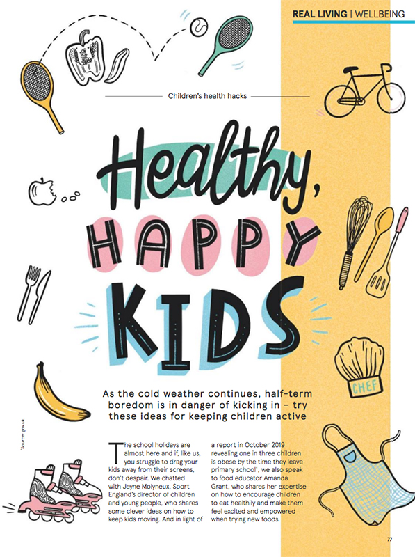 Nic Farrell loved working on this recent commission for Tesco Magazine’s February issue. Nic’s characterful illustrations and hand drawn lettering were perfect for the magazine's feature on keeping Happy Healthy Kids during half term. To see more of Nic’s work, click here.
