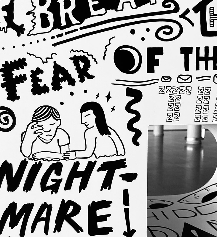 Nick Chaffe’s spontaneous, hand drawn style is perfect for live events and he was recently commissioned to attend a medical conference in Lisbon to create a 3D mural capturing input from the delegates for this RSV installation. To see more of Nick’s work, click here.